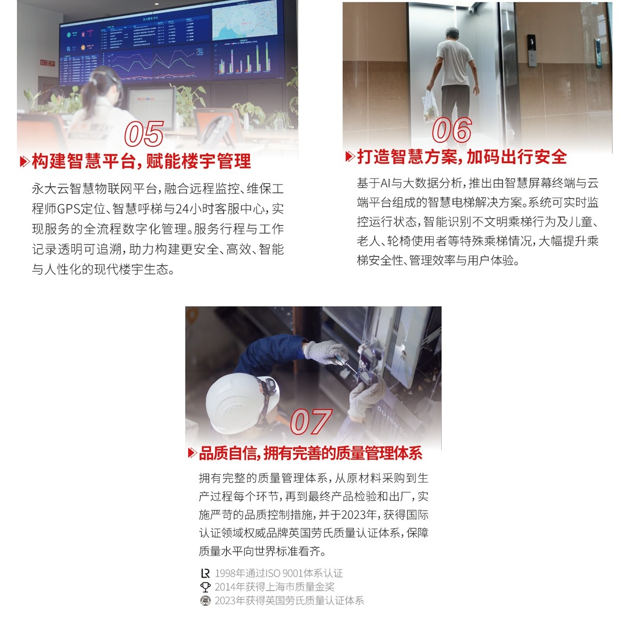 回溯歷程,安全技術(shù)的迭代升級(jí)是守護(hù)的核心力量——從基礎(chǔ)防護(hù)到智能監(jiān)控,從人工巡檢到預(yù)測(cè)預(yù)警,持續(xù)投入與創(chuàng)新驅(qū)動(dòng)著安全防線不斷筑牢。每一次技術(shù)突破,都源于對(duì)隱患零容忍的追求。未來,永大將繼續(xù)以技術(shù)為矛、以規(guī)范為盾,為乘客打造安全、舒適、便捷的乘梯環(huán)境,承載萬(wàn)千家庭的安寧幸福,守護(hù)生活的高效便捷。